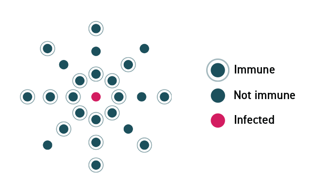 In a community where no one is immune to a virus, a disease can spread rapidly and lead to an outbreak. As individuals acquire immunity, either through infection or a vaccine, the disease spreads more slowly because fewer people can pass it on.
